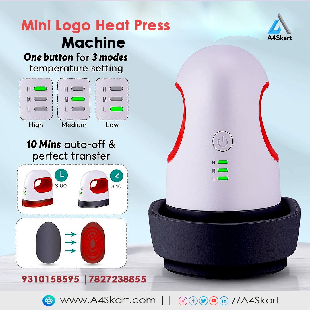 IN GENERAL, THE A4SKART MINI LOGO HEAT PRESS MACHINE IS A DURABLE, EASY-TO-USE DEVICE IDEAL FOR HOBBIES OR LOW-PRODUCTION START-UP BUSINESSES. THE DIGITAL COMPUTER GAUGE REGULATES TIME AND TEMPERATURE, DISPLAYING TEMPERATURE IN DEGREES CELSIUS. THIS INTELLIGENT TEMPERATURE CONTROL SIGNIFICANTLY REDUCES ERRORS, ENSURING FULL OPERATIONAL EFFICIENCY AND INCLUDING QUANTITY COUNTING CAPABILITY LOGO HEAT PRESS MACHINE THAT CAN SUBLIMATE A TSHIRT AT A TIME HAVE CONTROLLER UNIT CONTROLLING HEAT AND TIME BUT ITS PRESS IS MANUAL